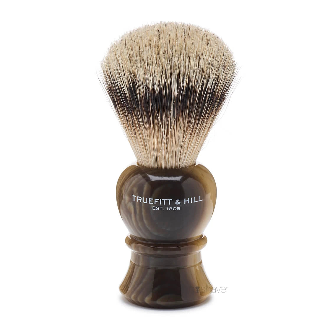 Der Griff ist aus Hornimitat gefertigt, einem Material, das klassische Eleganz mit Langlebigkeit verbindet. Dadurch ist der Rasierpinsel sowohl praktisch in der Anwendung als auch schön in der Präsentation.